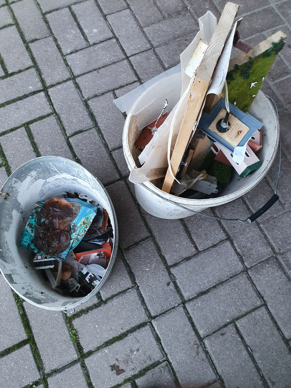 Station 3 alt (nur Petling), erneuert (Tonfigur) und neu (Steingutfigur)